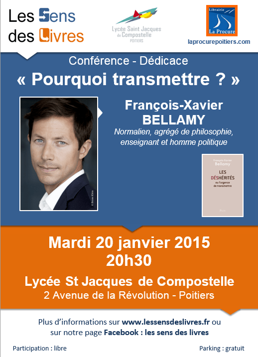 Lors de sa première rentrée comme enseignant, un inspecteur général de l’Education nationale déclare à François-Xavier Bellamy « Vous n’avez rien à transmettre. » Cette soirée sera l’occasion, pour cet enseignant, philosophe et auteur – Les déshérités (Plon 2014) – de répondre à cette sentence, de nous expliquer l’origine du regard que nous portons aujourd’hui sur la culture et de traiter la nécessité, inhérente à la nature humaine, d’apprendre, de recevoir une transmission.
