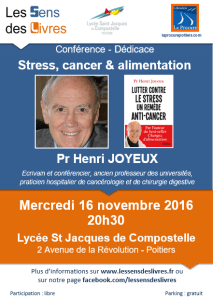 Les cancers ont des causes multiples : le tabac, la pollution, les mauvaises habitudes alimentaires, l’alcool, les excès hormonaux, les médicaments immunosuppresseurs, les virus, la génétique… et le stress qui, par voie hormonale, réduit les défenses immunitaires. Comprendre le stress, savoir d’où il vient, comment il agit, comment le gérer au mieux par de saines habitudes alimentaires, une vie intellectuelle, affective et intérieure apaisée, voici ce que propose le professeur Joyeux, pour qui la lutte contre le stress est l’un des premiers remèdes contre le cancer.