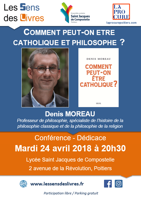 Le titre de cette conférence aurait pu être «Ce n’est pas parce que je suis croyant que je suis un imbécile !». Denis Moreau, professeur de philosophie et catholique, s’explique sur sa foi, en se plaçant sur le terrain de l’argumentation rationnelle. Parce que croire n’interdit pas de réfléchir, il nous propose de nous interroger sur la manière d’être chrétien aujourd’hui : comment et pourquoi adhérer à une telle vision du monde ?