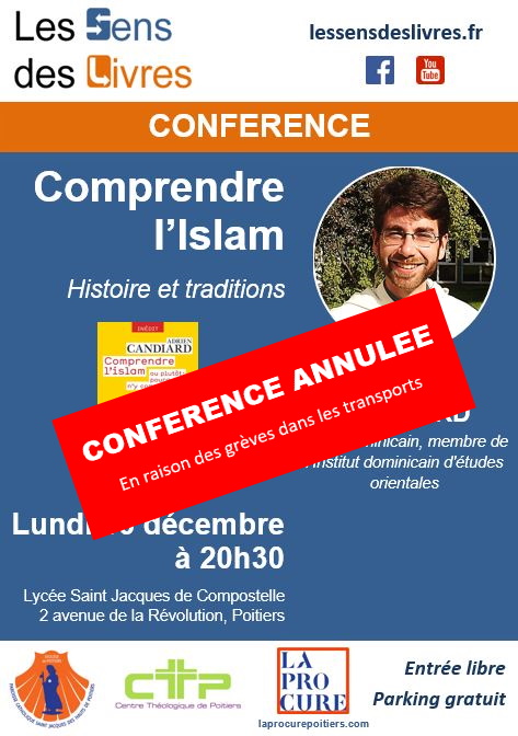 Le frère Adrien CANDIARD, auteur de « Comprendre l’islam » et membre de l’Institut Dominicain d’Etudes Orientales (IDEO), nous proposera d’y voir plus clair en nous donnant des clefs de compréhension de cette religion, en nous présentant son histoire, ses principaux courants de pensée, sa singularité et sa diversité impressionnante.