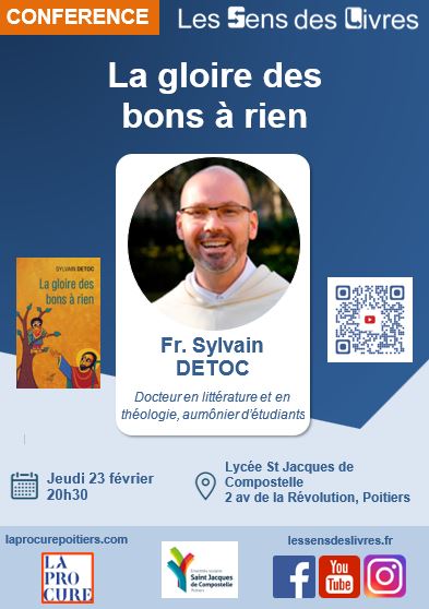 Conférence / Dédicace gratuite « La gloire des bons à rien » avec le frère Sylvain DETOC, jeudi 23 février 2023 à 20h30 au lycée Saint Jacques de Compostelle.